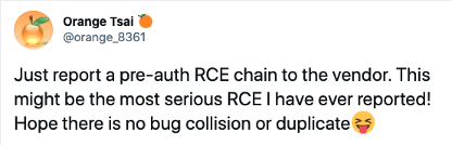 Figure 2: The researcher credited with the discovery of the vulnerabilities tweeted publicly.