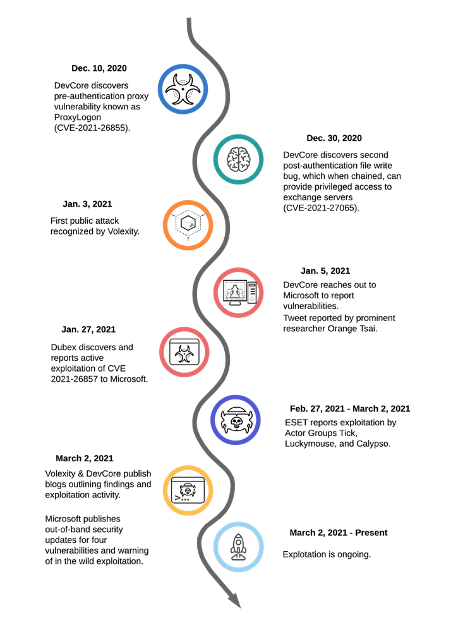 After this discovery, a second flaw was identified that could be chained together with the ProxyLogon vulnerability to gain privileged access to Exchange Servers and write files into the server. This second vulnerability is now known publicly as CVE-2021-27065.