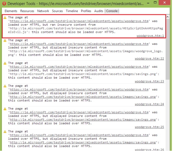 - Mixed content vulnerability – demo page prepared by Microsoft