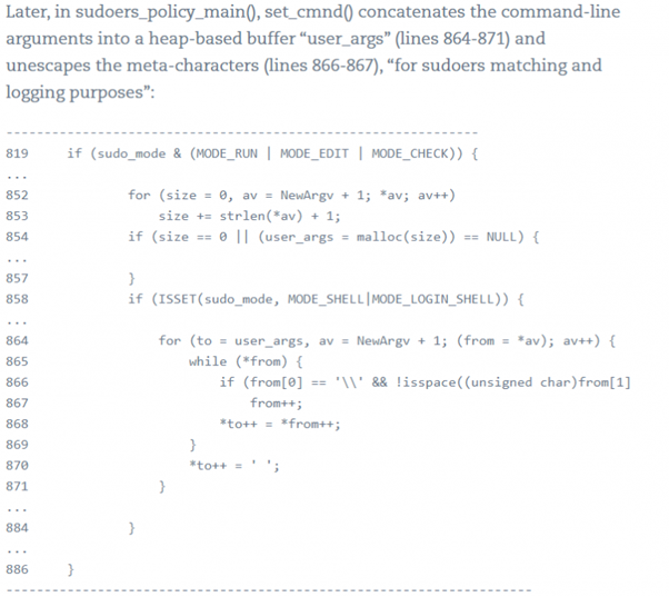 - Start Sudo as sudoedit and add the “-s” option. The out-of-bounds characters copied to the heap-based buffer “user_args” when the command line ends with a backslash will be sized. Because it is not included, it causes a heap-based buffer overflow.
