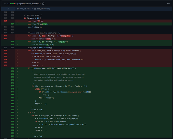 Figure 3: commit 8255ed69 where CVE-2021-3156 was introduced with a new commit.