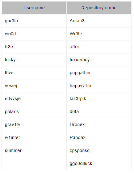 The GitHub endpoints are generated dynamically during the malware execution. According to the JPCERT/CC analysis, the username and repository used by the malware are obtained from this list during the execution.