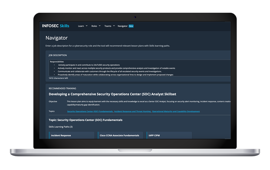 All Infosec training maps directly to the NICE Workforce Framework for Cybersecurity to guide you from beginner to expert across 52 Work Roles.